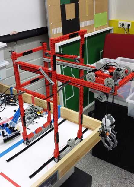 Cada grúa cuenta con 2 motores x Lego Technic 9V (43362) en su estructura de base y 2 más para arriba en su trineo de alzamiento. Otros 2 motores son de la serie Lego NXT 2.0. También necesita 2 x ladrillos Lego NXT 2.0 para cada grúa.