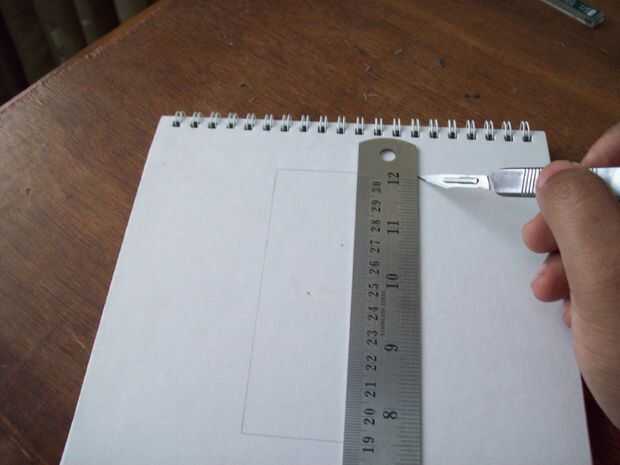 Recordar sólo tres lados de corte. Derecha, izquierda y arriba. Queremos que la parte inferior para ser intacto, así que podemos doblar más tarde y hacer una base para el teléfono.