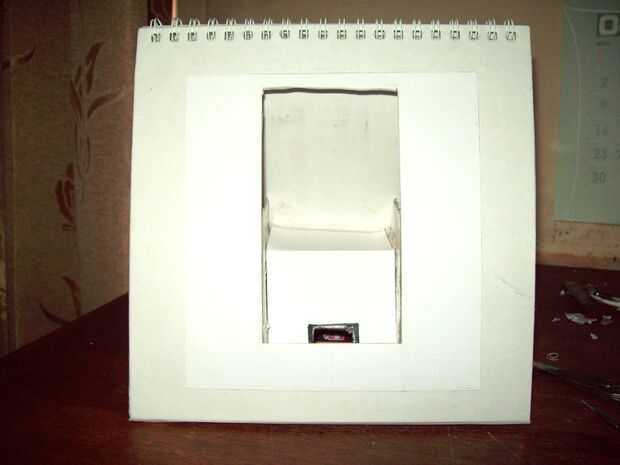 2. recorte un puerto para el altavoz. Luego recortar ventana similar en un simple trozo de papel y pegar en la ventana