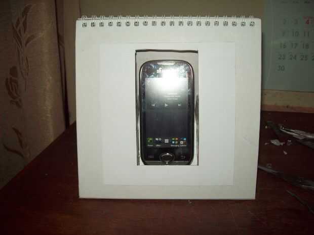1. Pegue las dos paredes en el lugar. Que se mantenga el teléfono en su lugar y evitar que se vuelque hacia un lado y básicamente