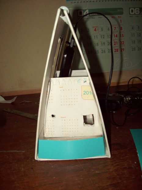Cortar tiras de papel brillante de colores, cartulina o cualquier papel grueso y hacer paneles laterales. Esto hará que 2 compartimentos a ambos lados para la organización de los auriculares y cargador.