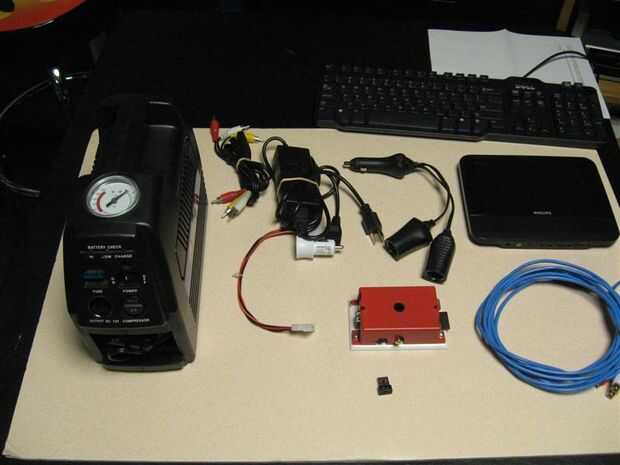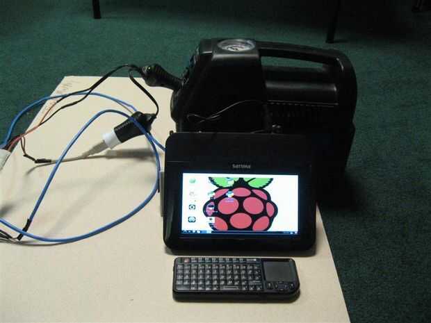 Pequeño barato sistema portátil que incluye, computadora (RPI), Monitor con Audio altavoces (secundaria pantalla de reproductor de DVD de Auto restaurado 29 $, incluyendo el reproductor de DVD para reutilizar), wireless keyboard con teclado (FAVI o igual micro teclado). Todo alimentado por mi compresor recargable / fuente de alimentación de 12 voltios ($39 y yo ya tenía para el uso con mi cañón neumático). El compresor tiene otro uso llenado de neumáticos cuando lejos de poder pero eso fue sólo una excusa para comprarlo. También planeo tener una fuente de CA desde un disco duro USB Programador (12v y 5v 1.5A cada uno conveniente).