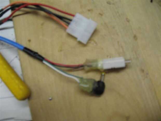 Ahora que tienes la pantalla de DVD con cable utilice una pistola de pegamento a 1. Mantenga las dos potencia de cortocircuito y 2. crear cierto alivio de tensión para cuando se desconecta.