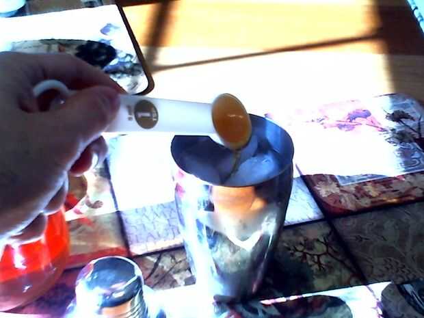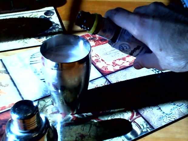 Medida y vierta todos los ingredientes líquidos en una coctelera con hielo. Agite bien.
