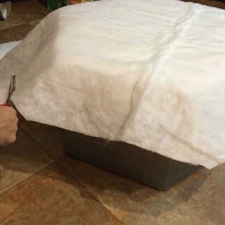 Después de poner la espuma, tapa con guata, luego cubrir los lados. (no hay necesidad de cubrir el fondo).