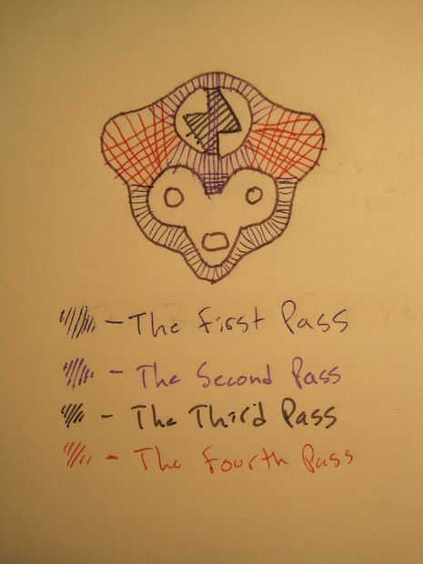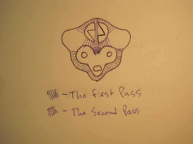 La siguiente parte es donde el diseño se complica, y quizás tenga que volver a la mesa de dibujo si su logotipo es demasiado difícil. Dibujó un esbozo de mi logotipo en un pedazo de papel y pensar sobre cómo cubro todo con hilos que necesita para ir de un lado de la forma a la otra. Usé plumas de color diferente para distinguir Qué hilos necesito bordar primero, y así puedo ver lo que cubriría por otras secciones de hilo. Esto resultó ser un desafío porque mi diseño tiene esquinas agudas y complicadas manchas grandes para cubrir. Os recomiendo que después de subir con un diseño de roscado, probarlo en una tela estándar y configuración del aro antes de potencialmente arruinar su sombrero. Este proceso se denomina digitalización, y no pude encontrar buenos tutoriales general en la web, así que todo lo que puedo decir es que es a través de y prueba tus ideas para saber cuanto cubre el hilo, y cómo es Prensas la espuma y cosas así.