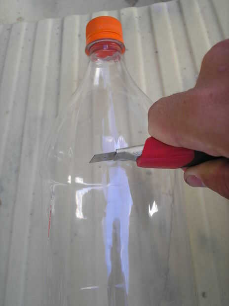 -En primer lugar, es necesario cortar la mitad de las botellas. El corte debe hacerse en el "cuello" de la botella. Es muy importante que todas las 24 botellas tienen el corte en el mismo lugar.