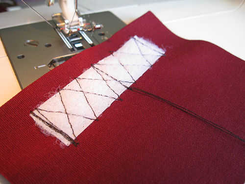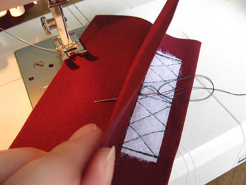 Si coser, usted puede zigzag puntada recta hacia adelante y hacia atrás sobre el velcro, reforzar los extremos; o utilizar una puntada en zigzag alrededor del borde exterior.