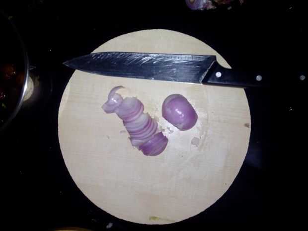 Dos medianas cebolla y chiles verdes 6. Cortar piezas largas como se muestra en la imagen con la ayuda del cuchillo. Chilly está dando diferentes gusto y sabor a los alimentos.
