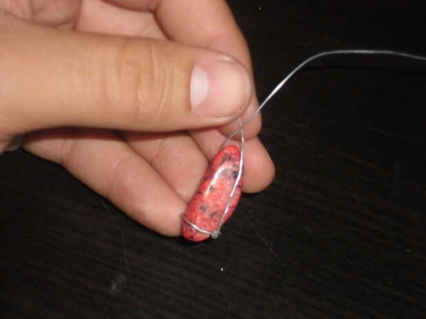 1. Envuelva el cable alrededor de la parte inferior de la piedra que vas a utilizar. entonces giro la juntos hasta que la longitud de la parte trasera de la piedra hasta el punto de cable le quiero el alambre superior. luego envolver un trozo de alambre alrededor de la parte de la piedra y lazo en la parte superior de la hilada parte Junta en la parte posterior.