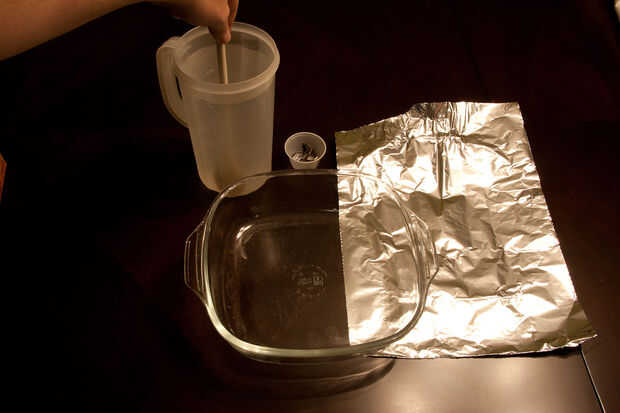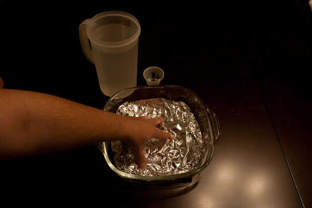- Presione el papel de aluminio en la parte inferior del plato de vidrio.
