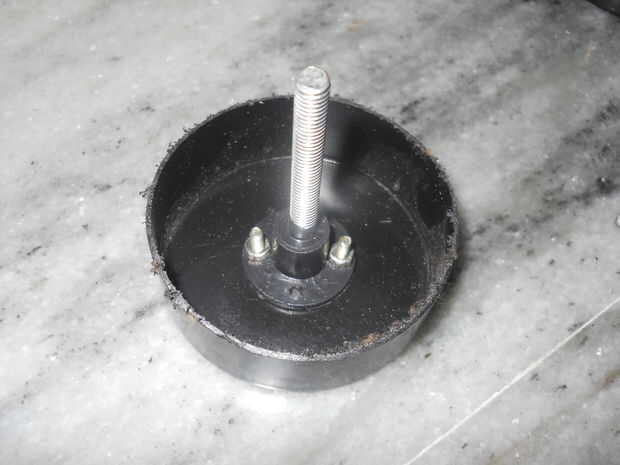 Coloque el vástago en el centro de la tapa y marque los orificios. Realizar al menos dos agujeros y tornillo como se muestra en la imagen.