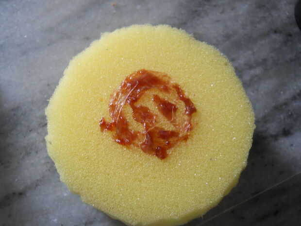 Aplicar la R de S en la tapa y la esponja. Dejar reposar un minuto y fíjelo.