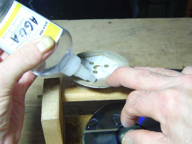 Saturar el fieltro con agua, y luego frotar una pequeña cantidad de pulimento.