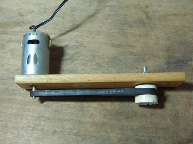 Amplió el eje con una longitud de tubería de latón, lo había apostado, luego agrega un pedazo de tubo plástico para ayudar a sujetar la correa.