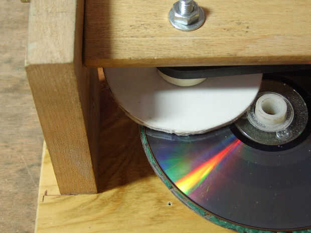 La vista posterior muestra el ángulo de ataque entre la zapata y el disco. La parte delantera de la almohadilla está haciendo el trabajo. La parte posterior de la almohadilla no hace ningún contacto.