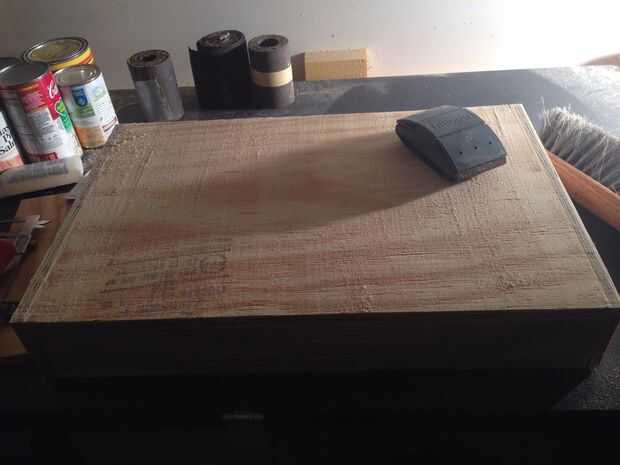 Utilizando un cincel pequeño y un tacto suave, sacar cada pedacito de pegamento extra que se puede ver; Utilice una goma de borrar marcas de lápiz callejeros. Lija de pesados ayudará con algunas cosas que no se desprenden fácilmente, si usted ha utilizado madera contrachapada barata (como yo) probablemente tendrás algunos sellos en algunas zonas que son casi imposible de salir. Como están en la parte inferior o el lado de la puerta del cajón, allí no debería ser demasiado de un problema.