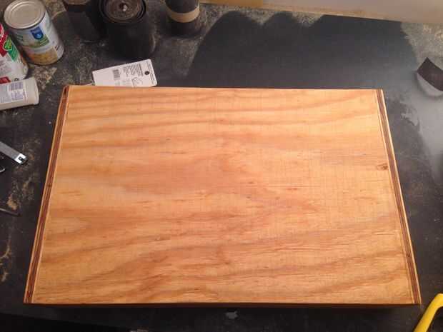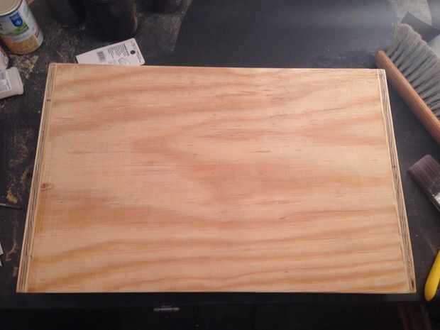 Contra cada superficie posible con varias pasadas de lija. Esto ayuda mucho con la apariencia de la madera contrachapada, así como la suavidad general de la pieza. Yo 30, 60 y 120 granos con un soporte de papel de lija, pero una lijadora de Palma orbital sería el ir fuera mucho más rápido.