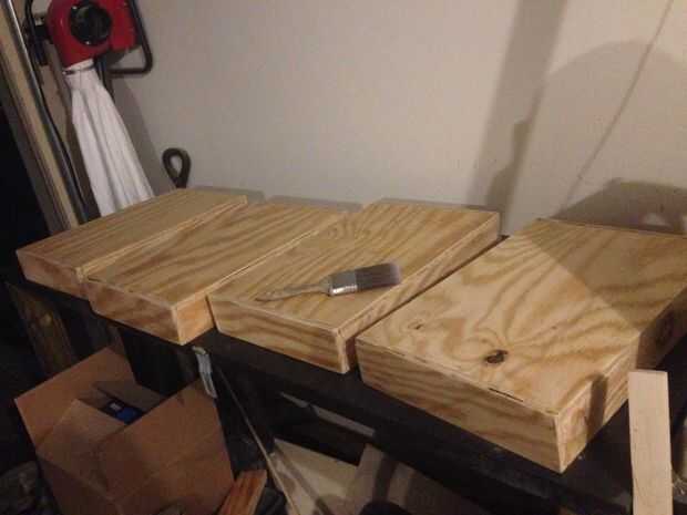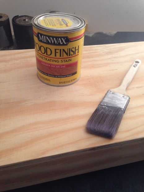 A partir de ahí, apliqué una capa de manchas Minwax y dos capas de poliuretano. No limpiar la mancha apagado después de aplica, y la "nuez de oro" llevó casi un día para realmente establecer, verás en las fotos del siguiente paso que es mucho más oscuro que parecía al principio. También cabe señalar que las secciones de capas en el centro de la madera contrachapada de teñido más oscuras, demasiado.