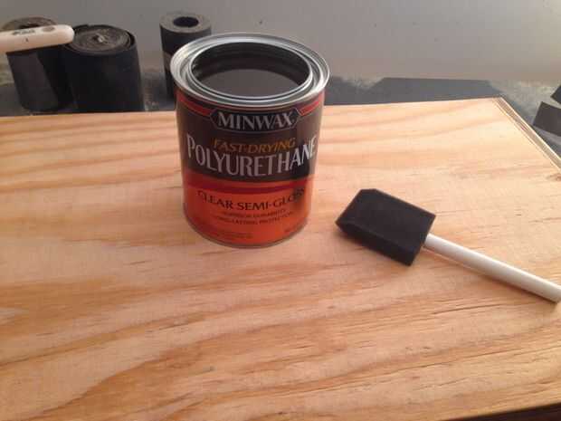Dan su poliuretano y manchas bastante tiempo para secar. Esto no puede ser acometido--no desea estantes pegajosos. Siga las instrucciones en la lata de poliuretano--en mi caso, incluyó una pasada con lija de 220 una vez seca para cuidar de las impurezas.