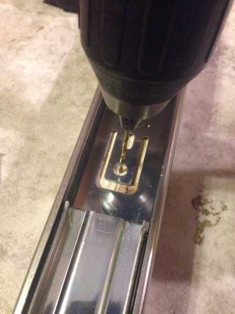 Separar las diapositivas, los he tenido versiones negro pequeño que empujaron hacia abajo para separar. He marcado la mitad de los espaciadores con un lápiz (3/4") y la Plaza de mi velocidad y había alineado el soporte con el centro, haciendo que el color frontal con el espaciador. Para la primera, taladré orificios piloto sujetando el soporte, pero la próxima vez ' redondo, sólo marca los centros con un lápiz y luego taladrar los agujeros después de.