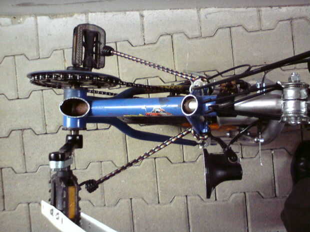 Es difícil pasar los muertos dos centros de la biela, por lo que añadir una cuerda elástica para ayudar a. También sería posible rueda libre empujando y utilizar sólo el movimiento del tirón, como remeros.