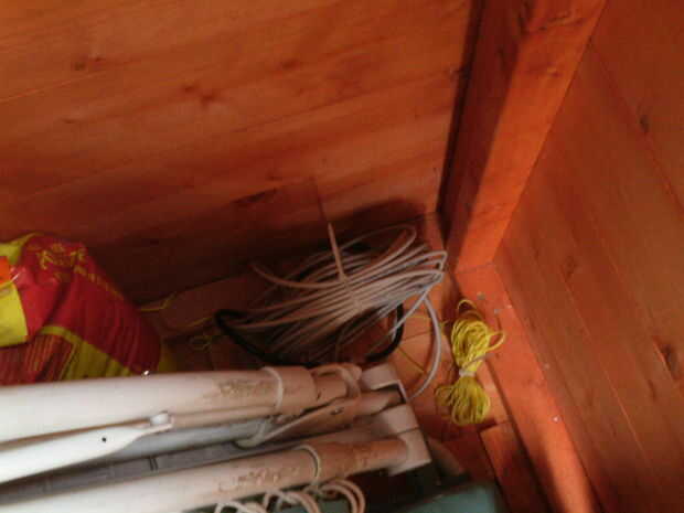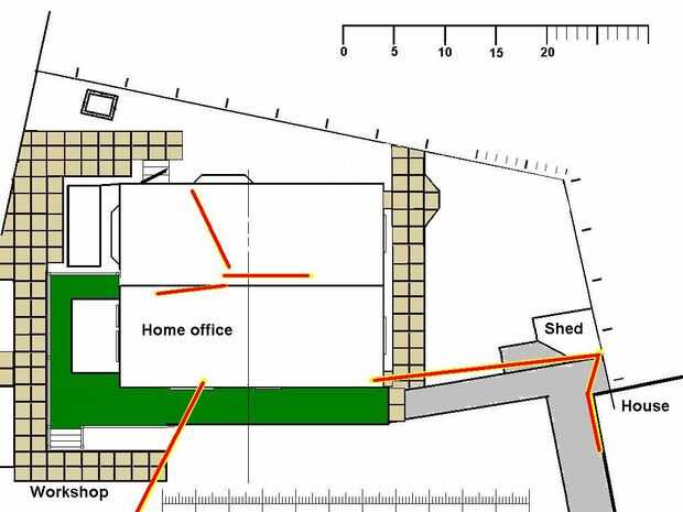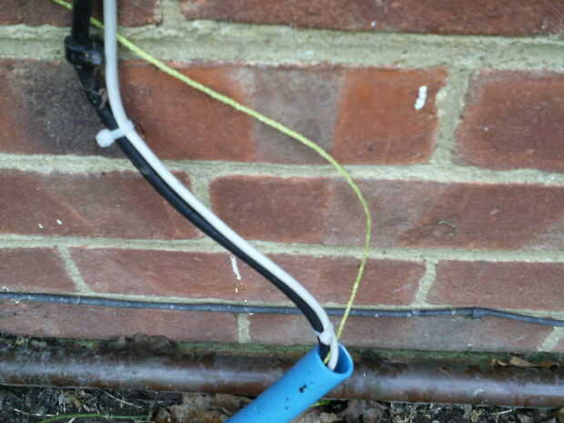 Con esta previsión estaba recientemente capaz de correr 30 metros de cable de red desde la casa (Foto 2), a través de un conducto subterráneo a la herramienta de la vertiente (Foto 3), luego a través de otro conducto subterráneo a mi oficina en el hogar (cuadro 4), un conducto que se instaló originalmente para funcionar una TV por cable de alimentación.