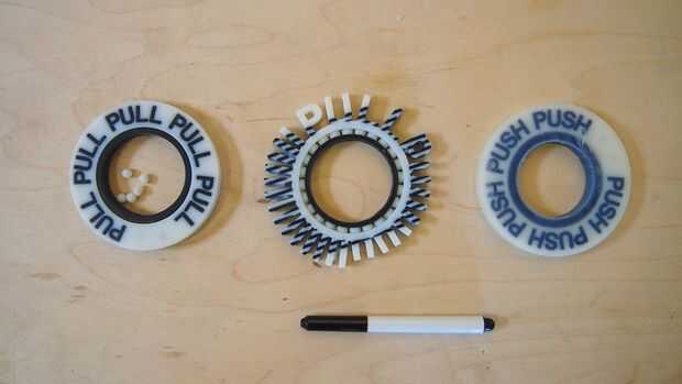 Tenemos entonces una versión impresa en el Objet Connex, una impresora de v que nos permitirá hacer la impresión material de dual. Así lo hicimos. Experimentando con la mirada un poco y hacer que las letras tienen rodamientos de bolas en vez de ranuras en T, todavía no bastante se movía como queríamos.