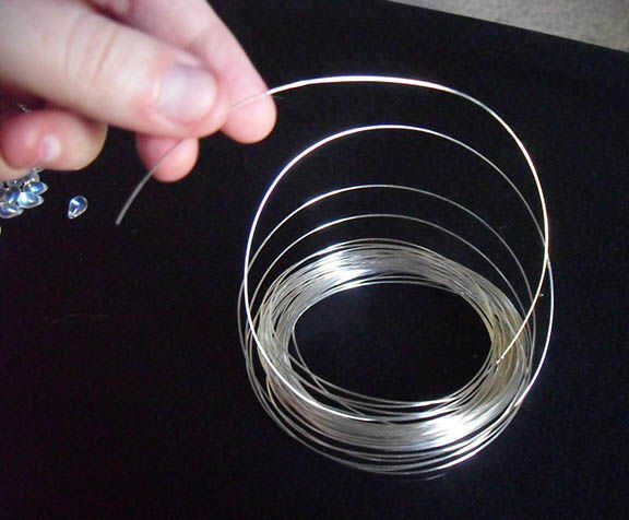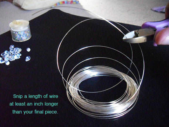 Cortar una longitud de alambre de la joyería ligeramente más largo que usted tiene la intención de la pieza final que. Date por lo menos una pulgada extra o pulgada y media. utilicé alambre de Temple mediano calibre 24; bien suficiente no para dar a la pieza un aspecto abultado y alambre-dominante y firme lo suficiente como para permitir algún alambre básico abrigo trabajo.