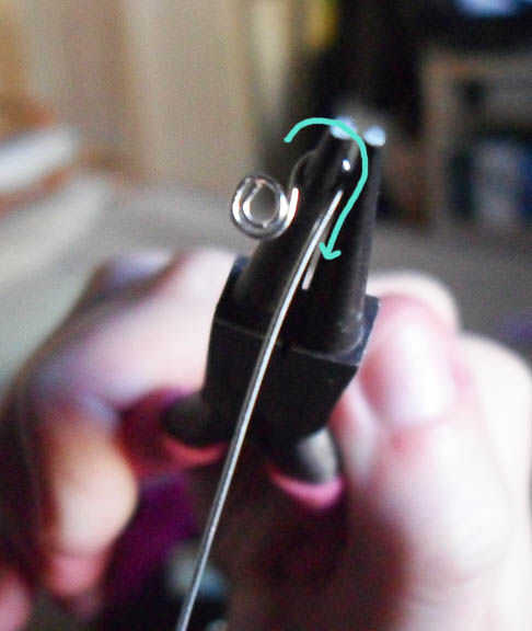 Volver a sus alicates de punta redonda. Uso una parte más gorda de los alicates (hasta aproximadamente 1/2 a 3/4 del camino) hacer un corve sobre tu lazo abierto.