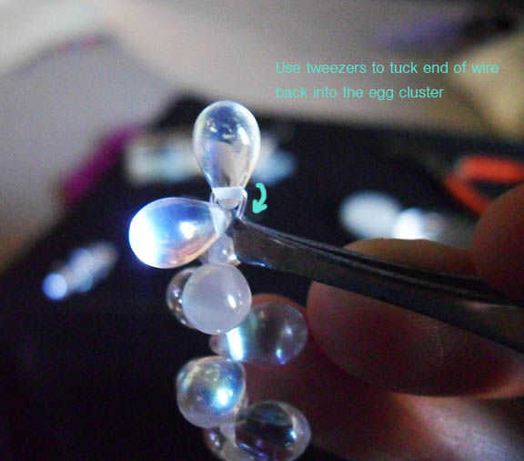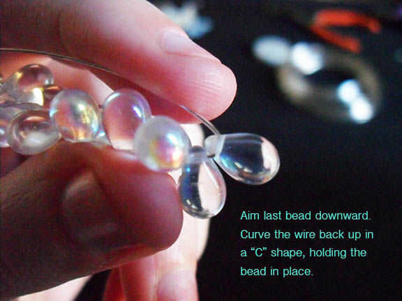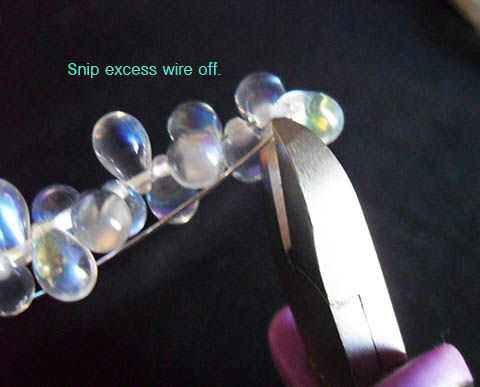 Utilizar pinzas de alambre para cortar a la longitud excesiva. Deje 1/8 de pulgada de alambre después de la última perla lágrima.