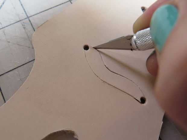 Corte los ojos por perforar un agujero en cada esquina y luego cortar el resto de la forma del ojo con el exacto.