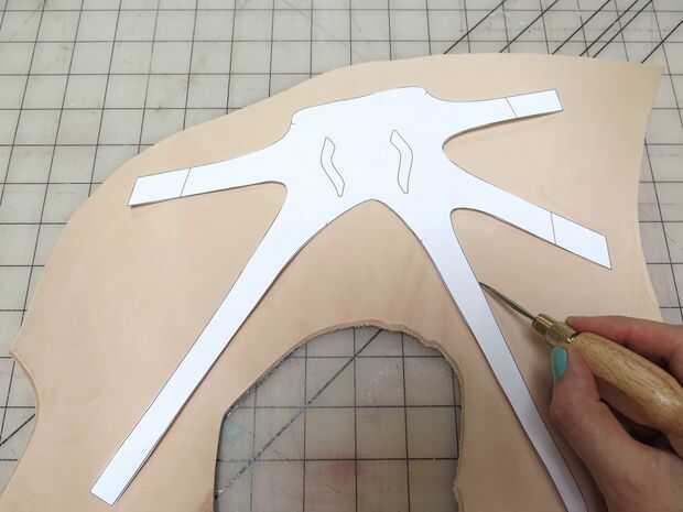 En la capa superior del pulpo, marqué las líneas de costura con un punzón y la pieza inferior marqué el contorno de los ojos de pulpo.