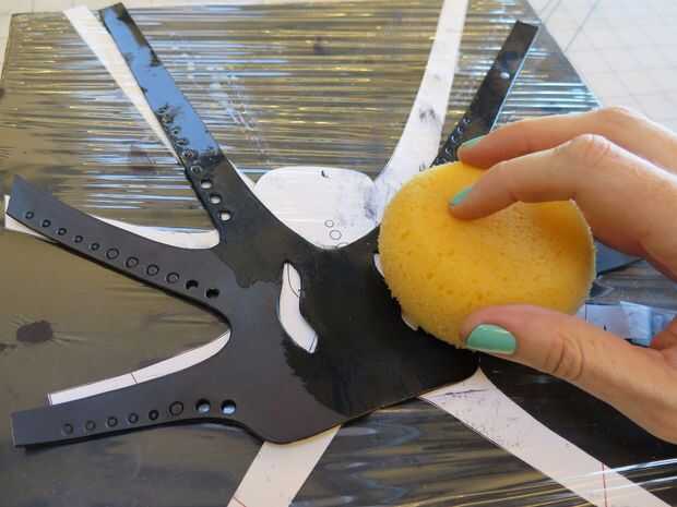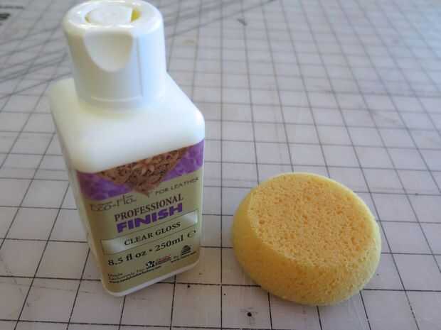 Finalmente traté a ambos lados de cada pieza con profesional acabado brillo para sellar y proteger la piel y del tinte.