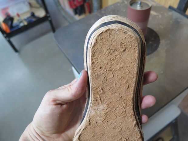 Por este tiempo se había secado el pegamento en mis talones apilados y llegó el momento de lijar.