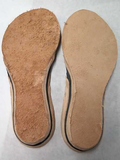 Me había dado cuenta antes de la sección de la piel que había cortado el pie derecho hacia fuera del fue nítida en el fondo que el pie izquierdo. Decidí que no me gusto esto por lo que terminé cortando una segunda capa de suela en mi cuero más fino y pegado a la parte inferior de la suela difusa. Esto solucionó el problema bastante bien.