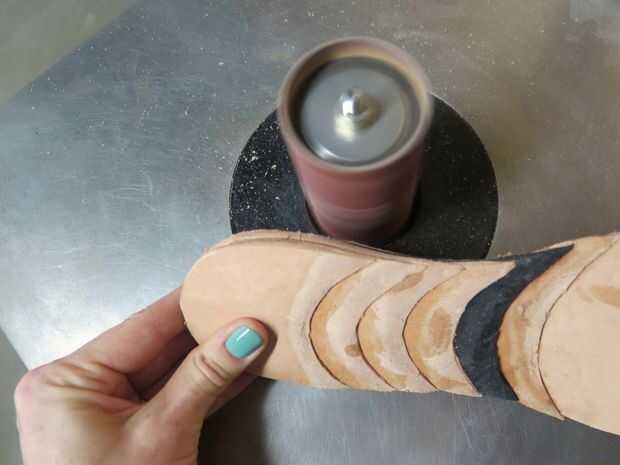 Estas lijadoras de energía funcionaron bien, pero el mismo trabajo podría también hacerse a mano con papel de lija y un poco de paciencia, o mediante un dremmel con un accesorio de lijado. Otra posibilidad podría ser usar su herramienta de raspa de cuero para ayudar incluso hacia fuera de los bordes. En otras palabras, si no tienes acceso a una lijadoras de energía, puede crear una agradable aspecto forma del talón.