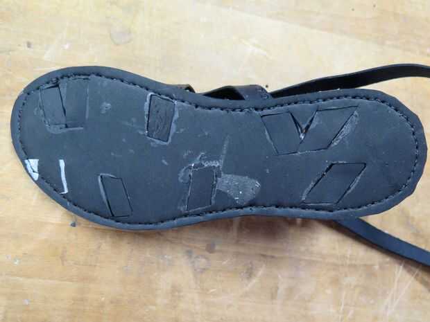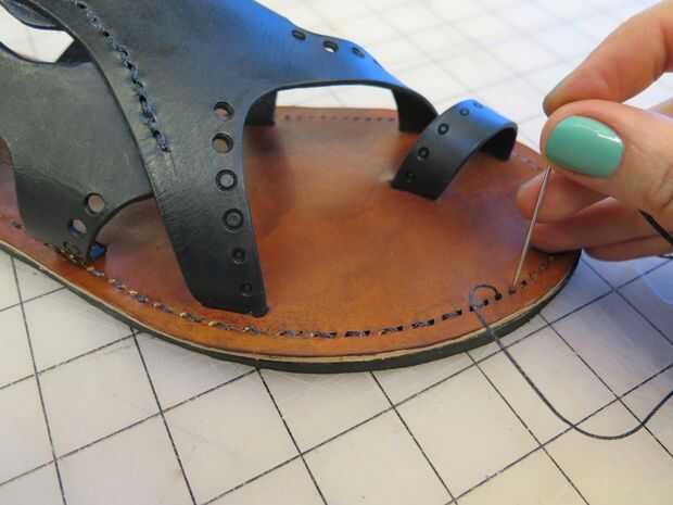 Una vez que se pegan la suela y plantilla, cosí utilizando una puntada de silla de montar. Esto les da una conexión extra fuerte y también se ve bien.