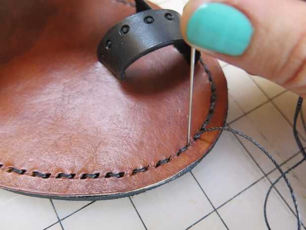 Cuando regrese a donde empecé, me cambió la aguja hasta el otro extremo del hilo de rosca y comenzó a coser alrededor en la dirección opuesta.