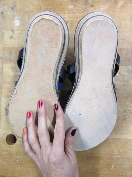 Con las capas del talón todos finalmente pegadas juntos, era el momento de lijar para que se vean incluso y acabado.