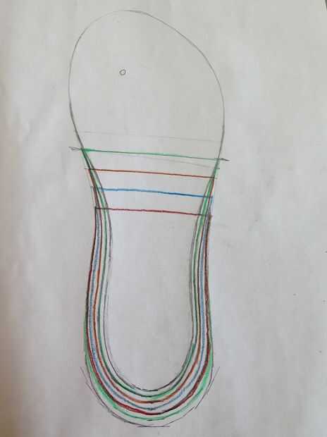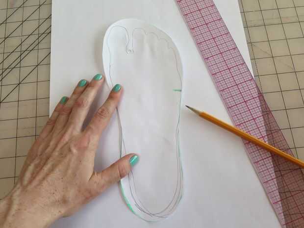 Primero remonta lo fuera en un pedazo de papel, asegúrese de copiar también los dos puntos que marca la bola del pie.