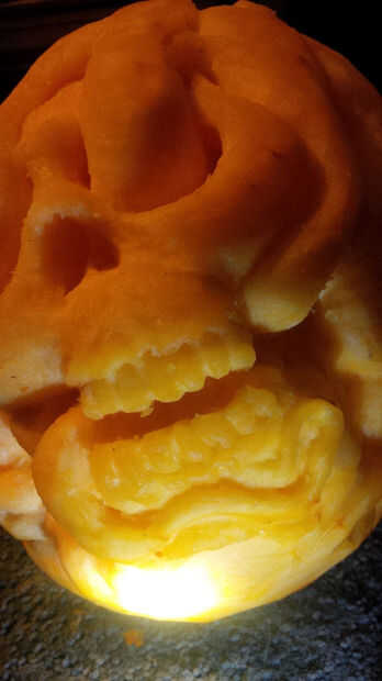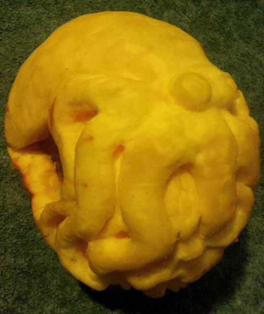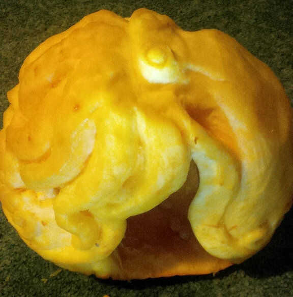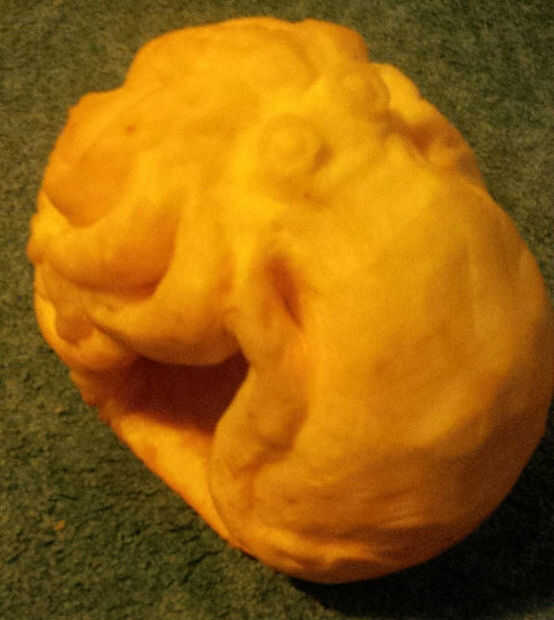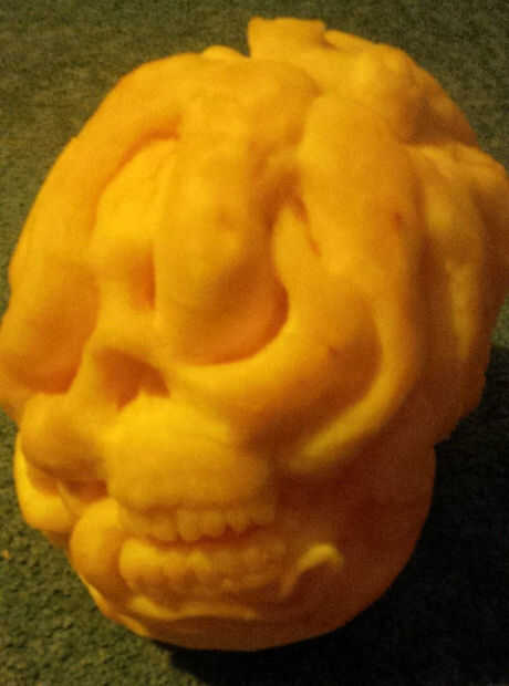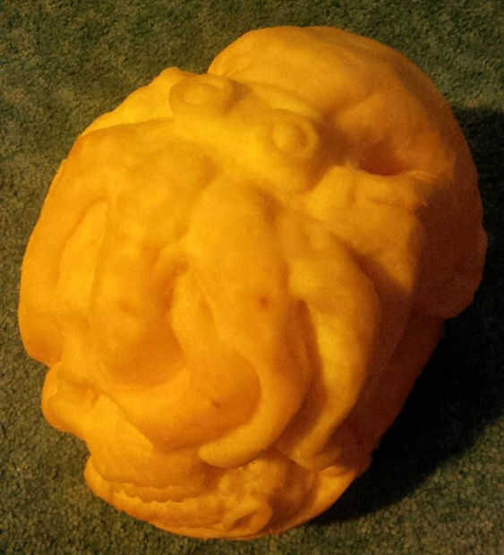 Había hackeado el tallo y base, hizo un trabajo bastante mala calidad de la limpieza de las tripas y había aplanado de la parte inferior para que todo se pare. Más ideas: idealmente (y con una planificación más) me gustaría ver ningunos pedacitos "estructurales" de izquierda, solo animalitos y cráneo. Otra forma de ir es a hackear desde el fondo y cortar para arriba y utilizar las rebanadas para extender los tentáculos... que podrían abrir un número de otras posibles actividades centradas en tentáculo, como pesca o saltar la cuerda o capturar otros desventurados seres humanos, o sus cráneos.