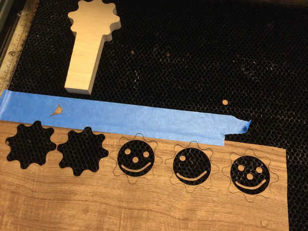 Experimentos previos habían demostrado que, debido a la separación de corte láser, no necesitaba a compensar o reducir el diseño a cortar las piezas de embutido. Este paso fue tan simple como lanzar una pieza de chapa en la cama y va para él.