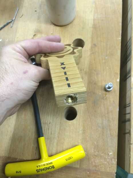 Una rápida explosión en la lijadora de banco se aplane hacia abajo la parte inferior de la madera y la tuerca de inserción.