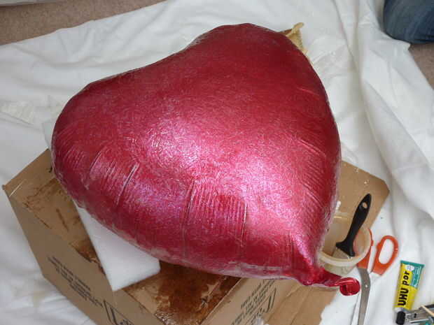 Mientras que busque una tarjeta de cumpleaños en una tienda local me di cuenta de una gran variedad de globos con helio fiesta, uno de ellos fue el corazón forma y apenas el tamaño correcto! Así que para £1,99 tenía forma de corazón que podría ser utilizada como un anterior al molde encima con la fibra de vidrio. Esta técnica es similar a uno que aprendí en la escuela junior, sólo entonces aplicamos el papel maché usando pegamento y cuadritos de periódico a un globo de látex normal, esto fue crear la base para mascarillas para una obra escolar.