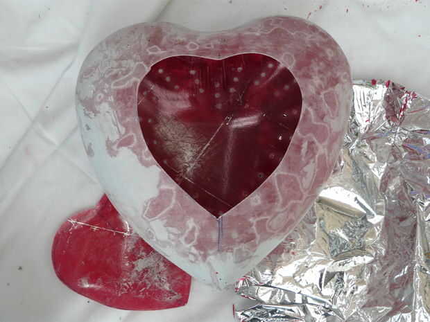 Miré en internet para el corazón en forma de casos que podría adaptar pero encontrado ninguno, así que volví a la idea de hacer el corazón en fibra de vidrio. Si más de un corazón fue a hacerse entonces merecería la pena hacer primero un molde de fibra de vidrio, pero como esto era de esperar que una única decidí hacer el corazón en dos mitades por una antigua y unirse a ellos juntos. Bien el fue la primera idea, lamentablemente la espuma me decidí a hacer la primera de fue disuelto por la resina por lo que terminé con un caos! Así se vive y aprende!