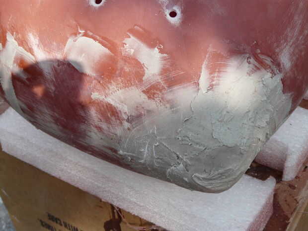 Fibras de vidrio por todas partes y se causar irritación y picazón si se ponen en la piel, siempre sigue los fabricantes manejar instrucciones para las resinas y la estera de.