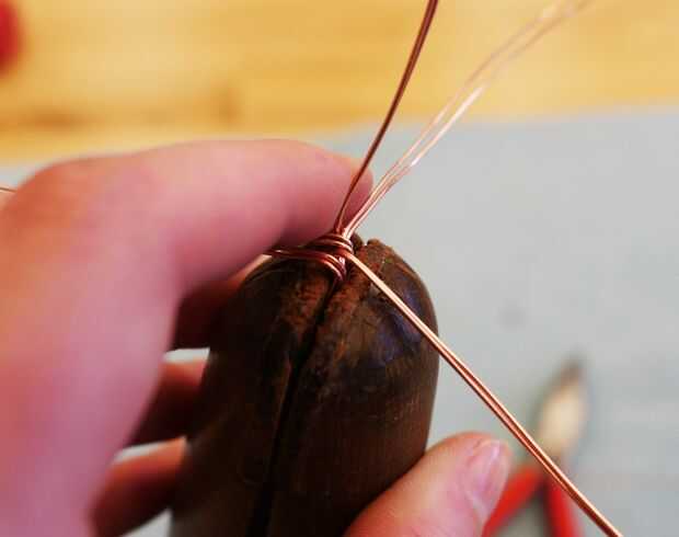 Para su filamento de la trama final, suavemente Levante y tire Grupo 5 Grupo 1, como lo hizo con los grupos 2, 3 y 4, en la foto superior. Grupo 5 debe estar orientado en la misma dirección de grupo 3. Ahora, igual que cuando empezamos, tenemos 4 grupos de cables alternativamente hacia direcciones opuestas.