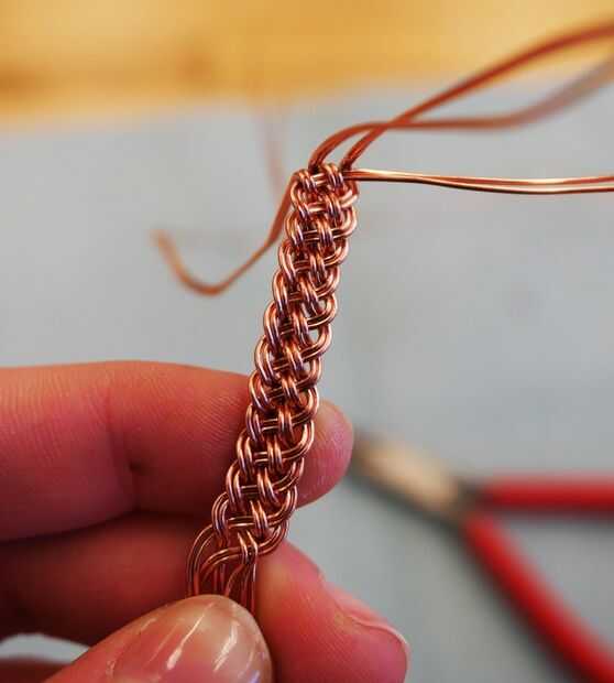 Después de unos 10-15 filas, seguir adelante y tomar la pieza de la abrazadera y le dan un aspecto. En este momento, su proyecto debe verse algo como esto. Su armadura está empezando a tomar forma y endurecer, y los cables están empezando a endurecer de usted después de haber doblado los. No te preocupes, esto es lo que queremos. Ayuda el proyecto terminado para ser un poco más durable. No te preocupes de desentrañar en este punto, es casi imposible para los cables a ellos mismos. Mantienen muy bien la forma.