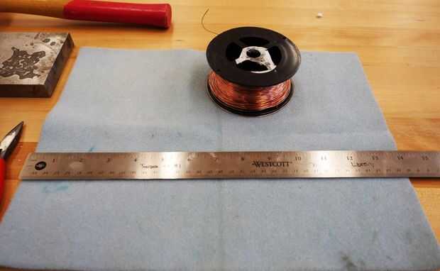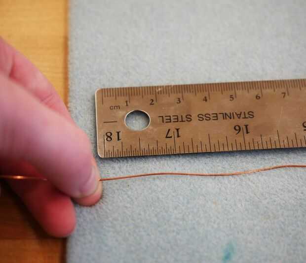 Mida la longitud del cable que se desea trabajar con. Para este proyecto, te recomiendo 18 pulgadas, especialmente si eres una tejedora de alambre primer tiempo. Ayuda a tener alambre extra para trabajar con, por lo que tiene un poco de espacio para respirar. Para proyectos posteriores, puede utilizar menos o más una vez que tengas una idea de cómo tejer afectará la longitud final de su proyecto.